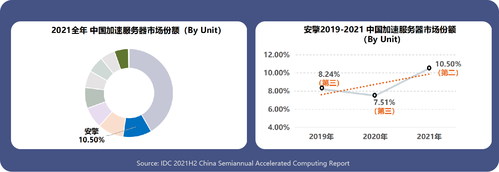 2021年,安擎AI(加速)服务器以10.50%(By Unit)的市场占有率,位居中国AI服务器市场第二位!